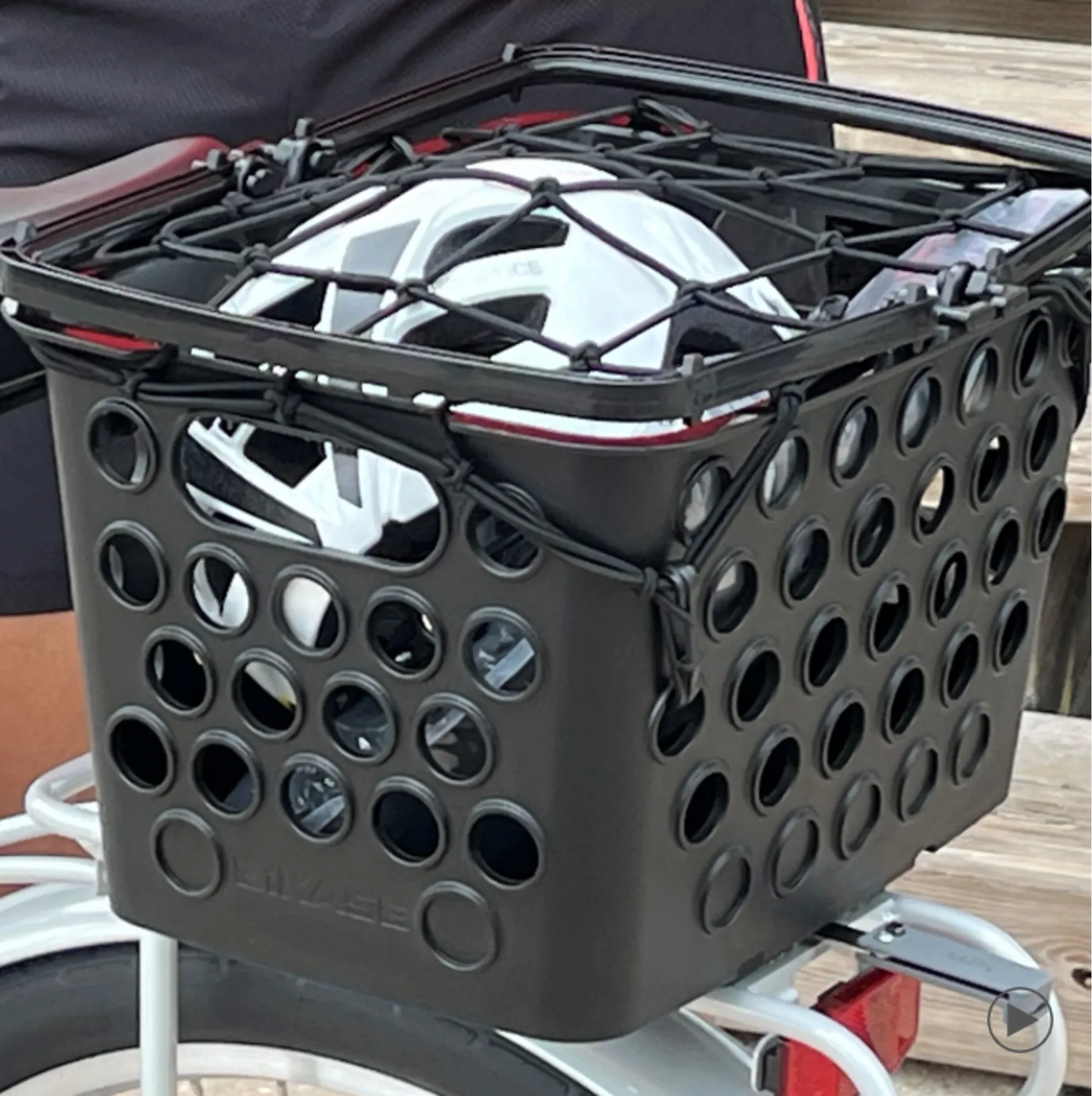 Easy on and off Basket with MIK Attachment. *Durable molded rust & heat resistant basket that attaches to MIK Bike Racks *Includes 2 carry handles that collapse and stow away *Dimensions: 14 1/2" x 10" x 8.5" *Max Capacity 20lbs.