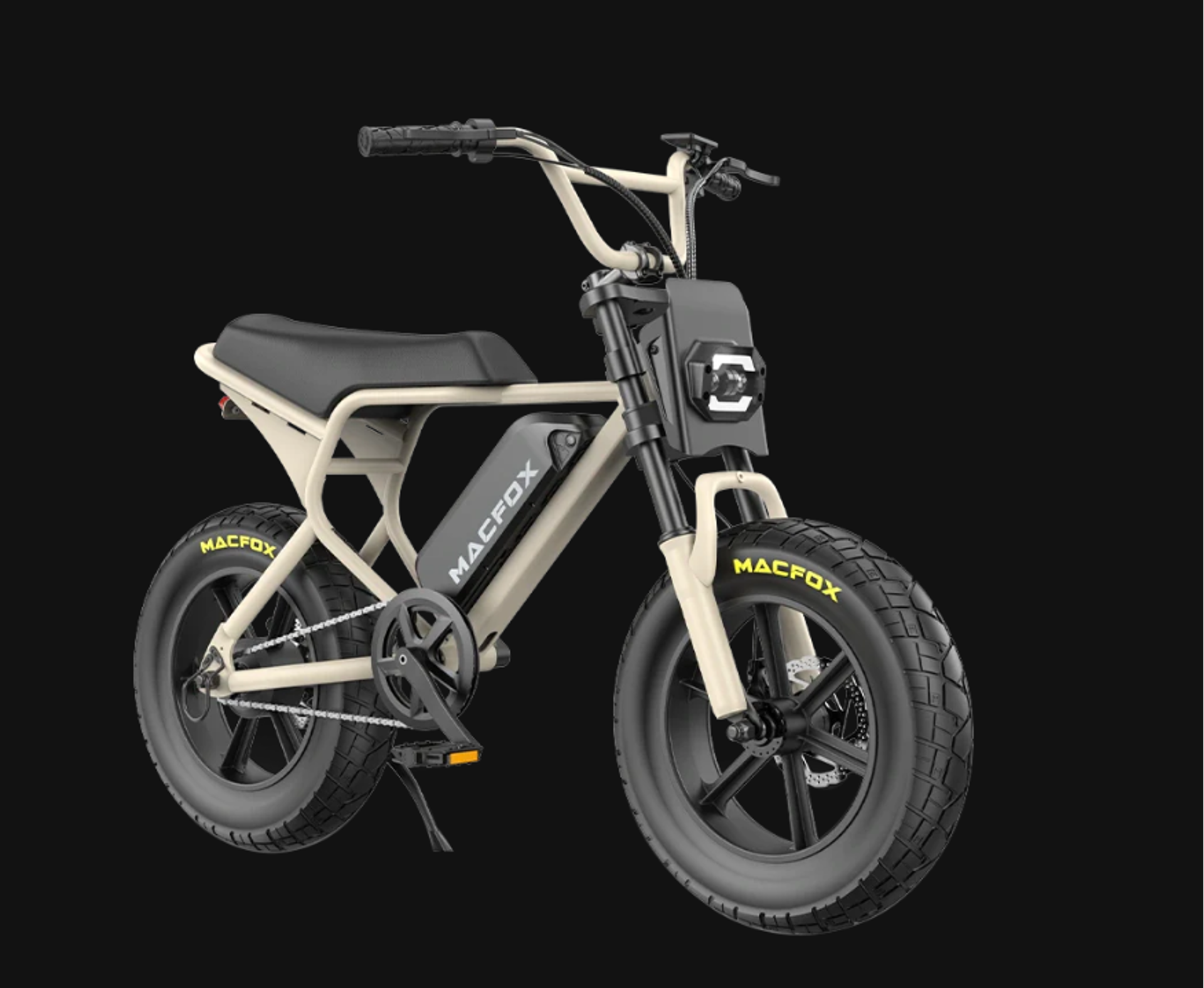 Built with a tough high-carbon steel frame, the M16 is ready to handle impacts. The lightweight steel frame and 40cm (16") tires ensure easy handling and stability. The reinforced rear wheel supports keep the ride steady. The Macfox M16 comes with enhanced front suspension, ensuring you stay smooth and in control when tackling obstacles.