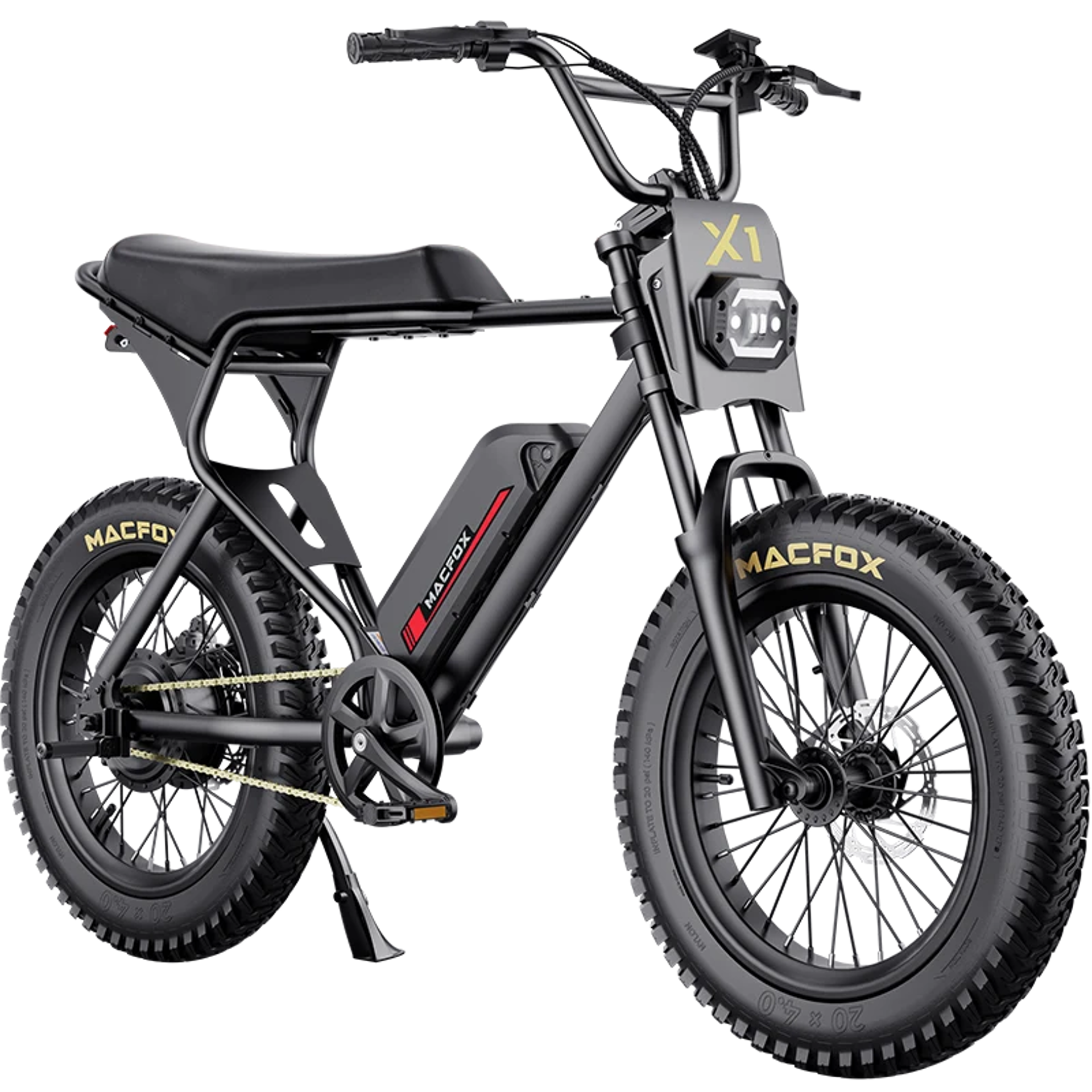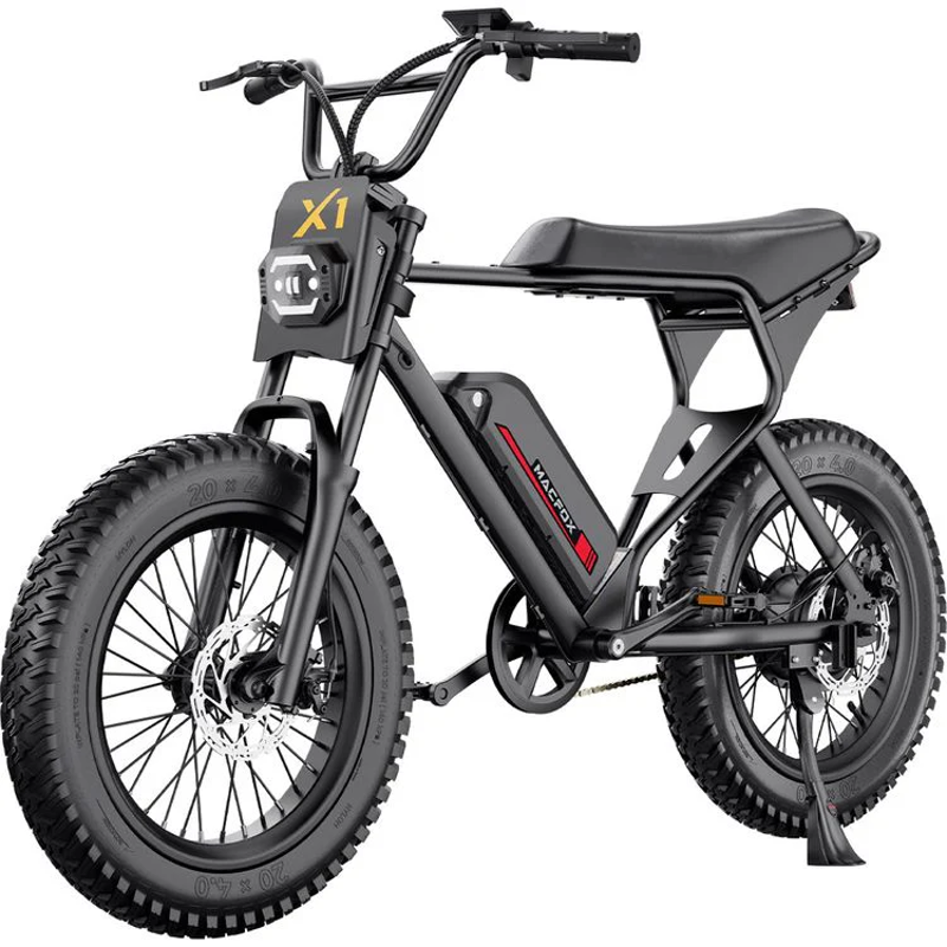 The Macfox X1S features solid front and rear disc brakes, giving you dependable stopping power when you need it. Ride confidently, knowing you are in control every time you hit the brakes.