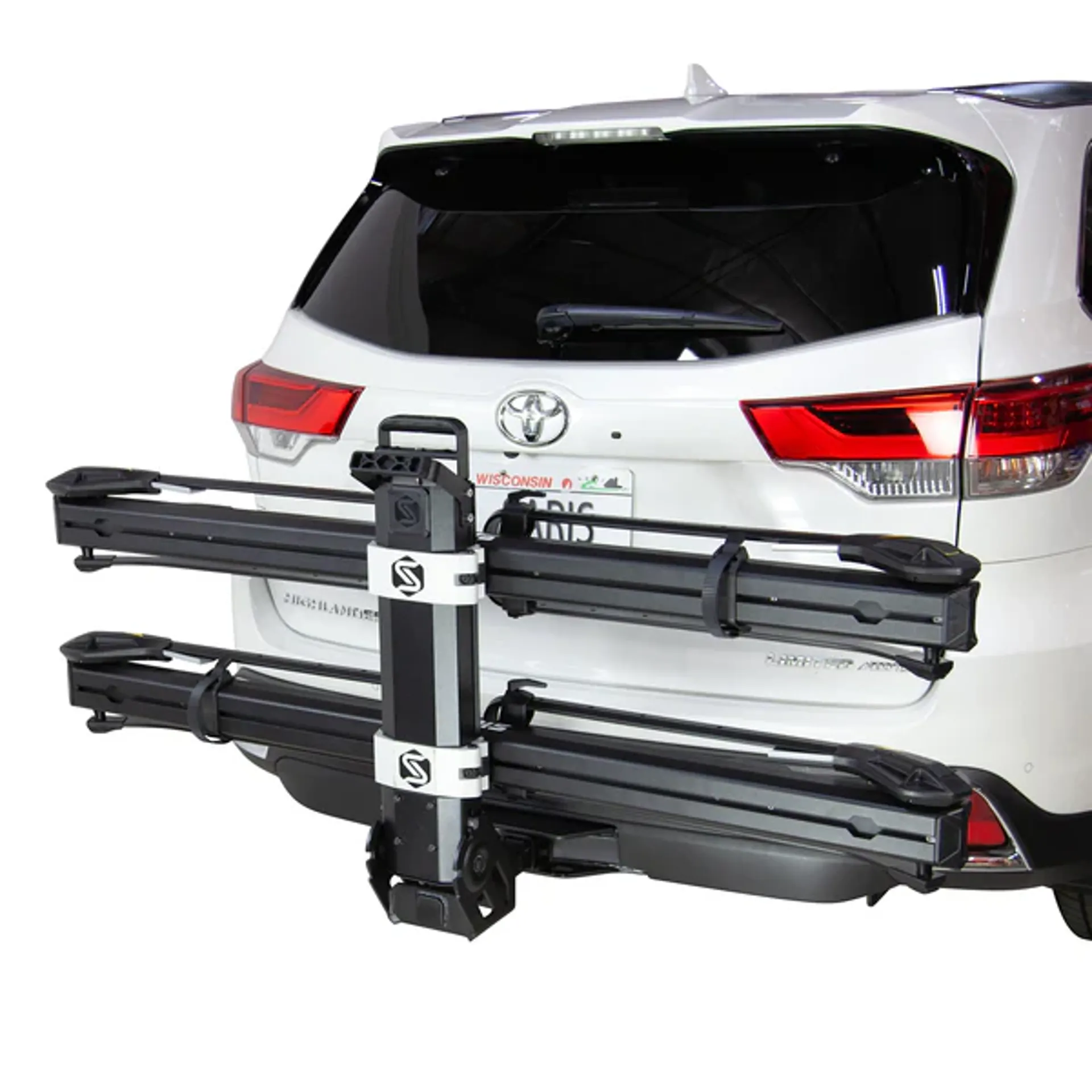 The Saris MHS 2 Bike Package is a modular, e-bike-friendly hitch rack that carries two bikes (100 lb each), tilts for hatch access, and features integrated locking. Expandable to 3 bikes with an add-on tray—ideal for serious riders.