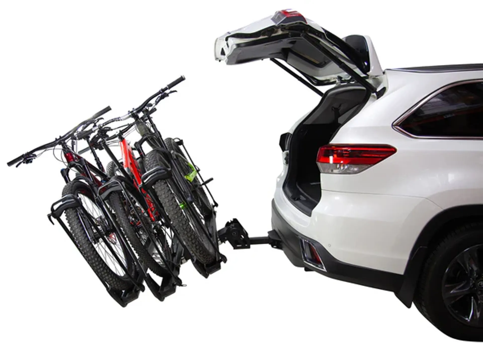 What sets the MHS apart is its zero-frame-contact design: bikes are secured by the wheels using dual-arm holders with tool-free adjustment, ensuring no damage to delicate frames. The rack also tilts, enabling hatch or rear door access without unloading bikes. Integrated locks protect both the rack and bikes, giving you peace of mind. With support for wheelbases up to 53″ and compatibility for a broad range of wheel sizes (20–29″) and tire widths, the MHS 2 is ready for mountain bikes, road bikes, fat-tire builds, and e-bikes alike.